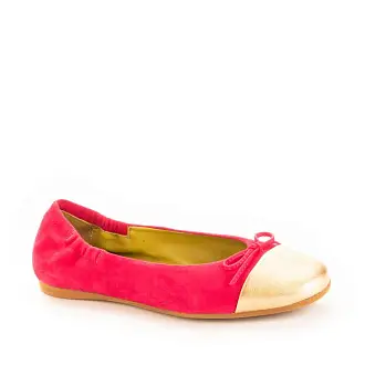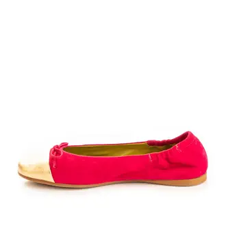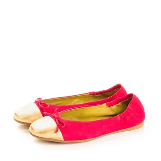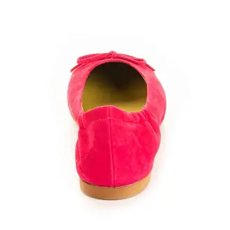 Эффектные балетки из натуральной замши розового цвета украшены золотистыми вставками и декоративным бантом.