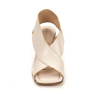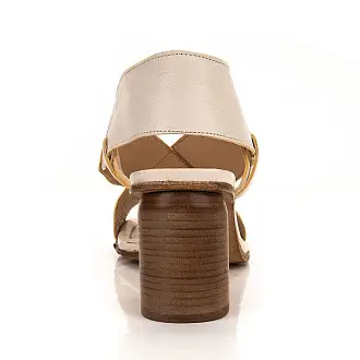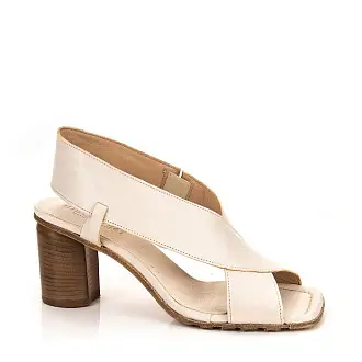 Стильные босоножки из натуральной кожи бежевого цвета изготовлены итальянскими мастерами. Модель на высоком и широком каблуке, который в процессе носки практически не ощущается.