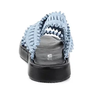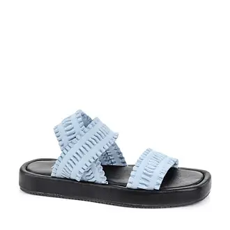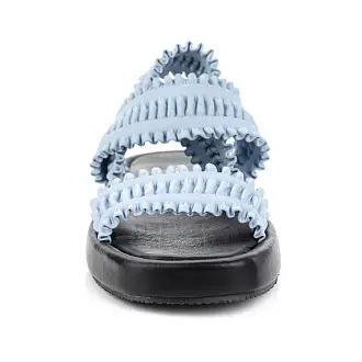 Легкие летние босоножки с фактурными ремешками могут дополнить любой образ. Обувь выполнена из качественной натуральной кожи красивого голубого оттенка. Надежную фиксацию на ноге обеспечивает эластичный ремешок, обтянутый кожей.