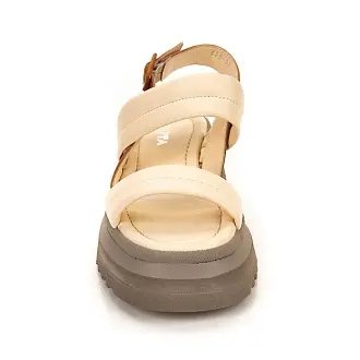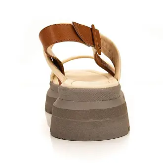 Базовые босоножки бежевого цвета идеально вольются в любой летний образ. Пряжка контрастного коричневого цвета, расположенная сзади, добавила дизайну современное звучание. Модель на невысокой протекторной подошве, что говорит о ее устойчивости на любых поверхностях. Натуральная кожа идеально подходит для жаркой летней погоды. Она обладает высокими гигиеническими свойствами, хорошо пропускает воздух.