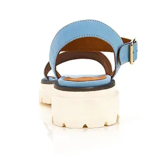 Босоножки итальянского производства выполнены из натуральной кожи в красивом голубом оттенке. Фиксируется обувь на ноге при помощи широкого ремешка с металлической нержавеющей фурнитурой. Облегченная подошва из вспененной резины сделала обувь легкой и комфортной в носке. Подкладка из натуральной кожи "шевро" создает для кожи стоп идеальный микроклимат.