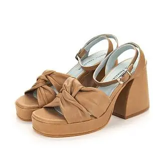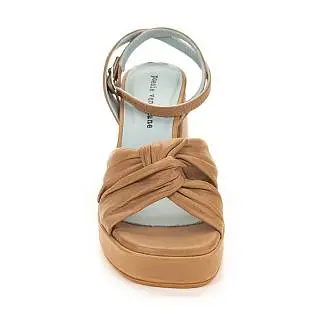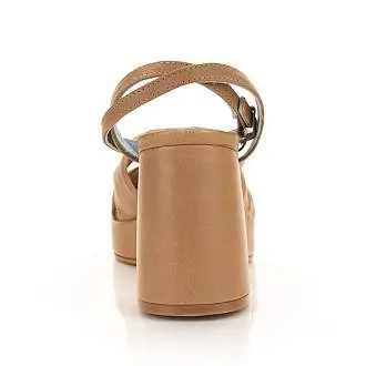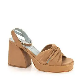 Стильные босоножки из натуральной кожи бежевого цвета изготовлены итальянскими мастерами на фабрике в Неаполе. Модель на высоком и широком каблуке, который в процессе носки практически не ощущается. Скрадывает высоту каблука широкая платформа.