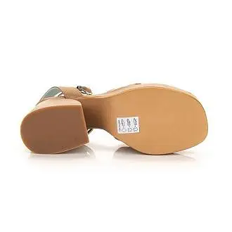 Босоножки фиксируются на ноге при помощи тонкого ремешка с пряжкой из латуни. Ортопедическая стелька добавляет обуви комфорта. Несмотря на массивный вид, босоножки получились легкими и идеально подходят для повседневной носки.