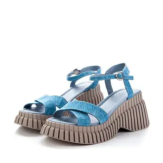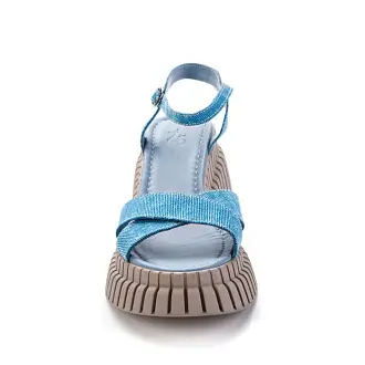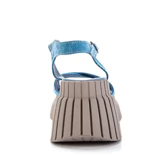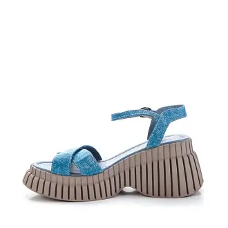 Женские босоножки из текстиля синего цвета имеют актуальную джинсовую поверхность. Обувь с широкими ремешками на высокой подошве с рельефной поверхностью. Натуральная кожа подкладки обеспечивает отличные гигиенические характеристики обуви, позволяя воздуху циркулировать и отводя влагу от стоп.