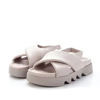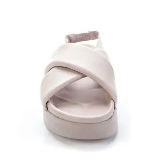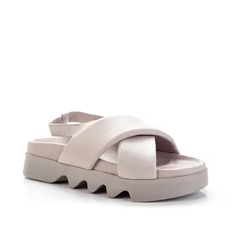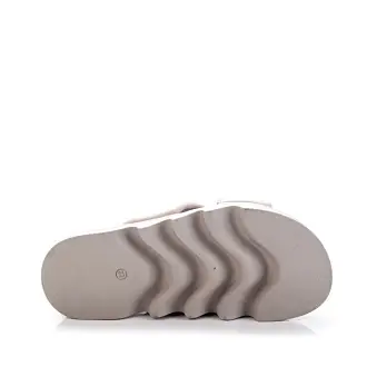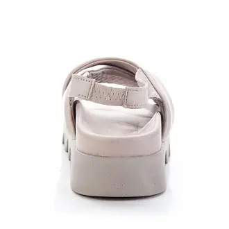Модель с широкими объемными ремешками надежно фиксируется на ноге при помощи эластичной вставки на заднике.