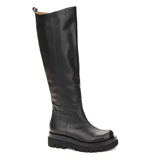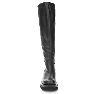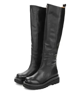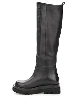 "Демисезонные ботфорты изготовлены из натуральной кожи черного цвета. Обувь отличается лаконичным дизайном, позволяющим сделать ботфорты частью базового гардероба.