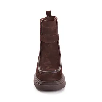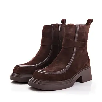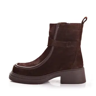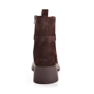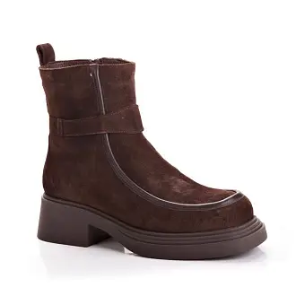 Коричневые замшевые ботинки на устойчивом квадратном каблуке позволят незаметно перейти из осени в зиму. Натуральный мех, использованный в подкладке данной модели, не позволит морозу проявить себя.