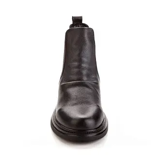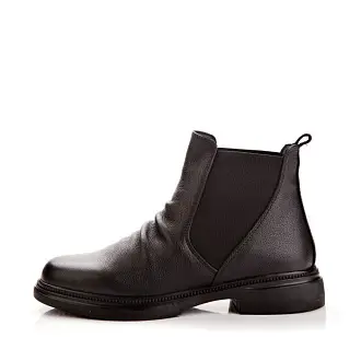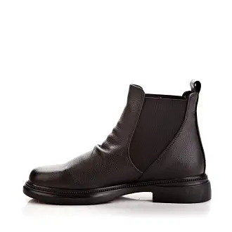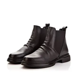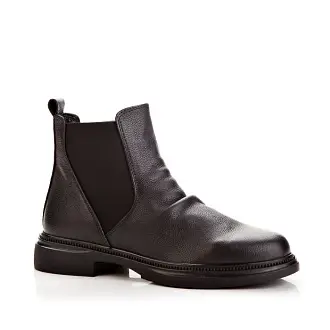 Челси из натуральной кожи черного цвета легко комбинировать с различными стилями одежды — от повседневного до более формального. Их можно носить с джинсами, платьями и юбками, что делает их универсальной обувью. Ботинки стоят на низком каблуке и оснащены эластичными вставками, что делает их комфортной повседневной обувью.