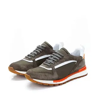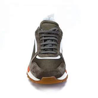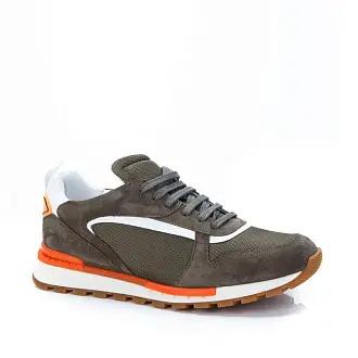Стильные мужские кроссовки изготовлены из натуральной кожи и натуральной замши красивого зелёного цвета.