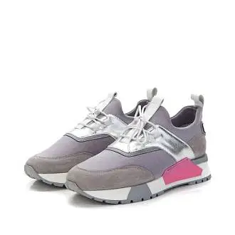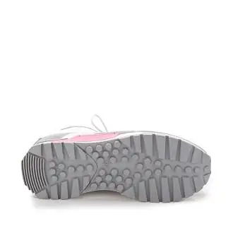 Вставка серебристого цвета сверху и контрастная розовая накладка на подошве подчёркивают спортивный стиль кроссовок.