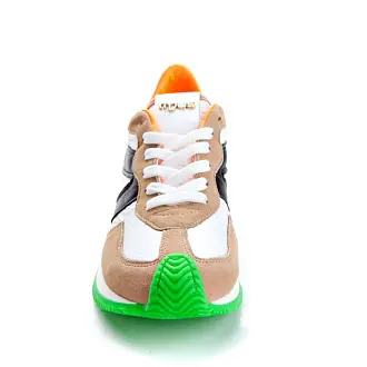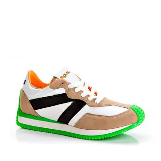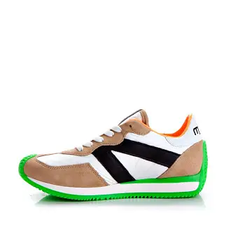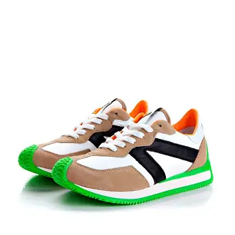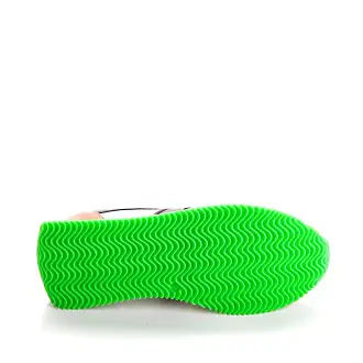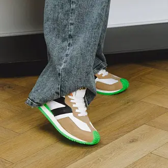 Женские кроссовки выполнены из натуральной кожи и замши. Контрастные вставки салатового и черного цвета украшают дизайн.