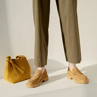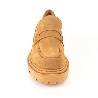 Элегантные лоферы из замшевой кожи коричневого цвета выполнены в лаконичном дизайне, который позволяет им стать частью любого образа.