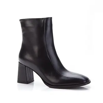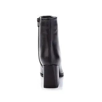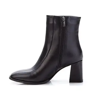 Женские полусапоги изготовлены из натуральной кожи чёрного цвета. Универсальный оттенок и лаконичный дизайн делает обувь гармоничной участницей любых модных комплектов.