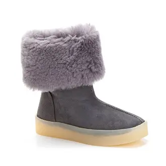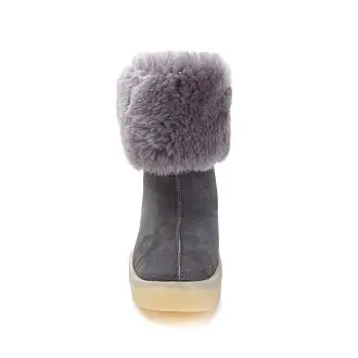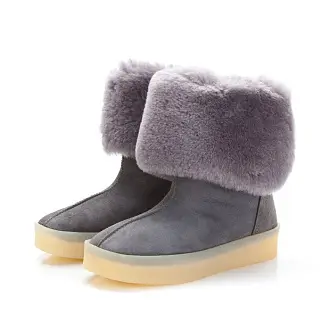 Украшением дизайна стала широкая меховая отделка по краю голенища.