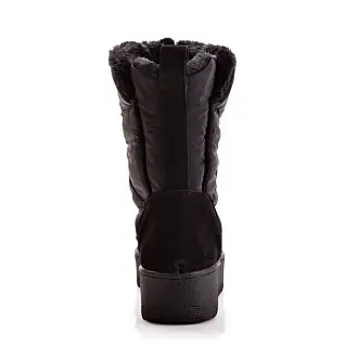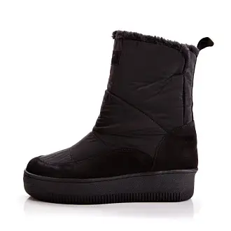 Полусапоги-дутики отделаны натуральной замшей и утеплены натуральным мехом, что делает их идеальными для осенне-зимних условий, обеспечивая надежную защиту от холода и снега. Модель имеет легкую и гибкую подошву, что обеспечивает комфорт при длительной носке.