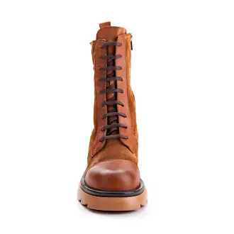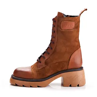 Замшевые полусапоги на шнуровке напоминают ботинки, которые носили барышни в конце XIX века. Современную актуальность придает данной паре каблук — теперь он квадратный. А в остальном, как и прежде по ноге вверх поднимается шнуровка, полукруглый мыс позволяет ноге комфортно расположиться внутри, а высота голенища выше щиколотки защищает от осенней слякоти. Кстати, шнуровка скорее декоративная, поскольку для фиксации обуви по ноге есть опять же современный элемент — молния.