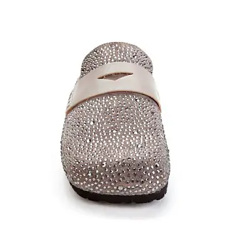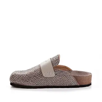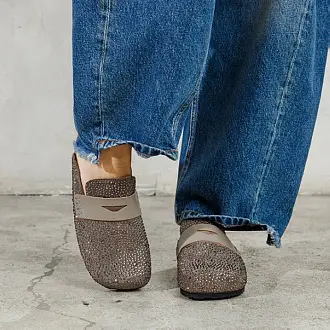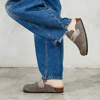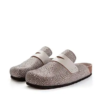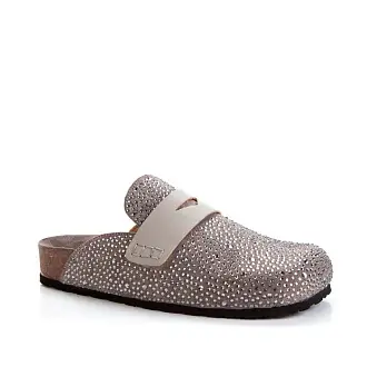 Модные сабо из натуральной замши серого оттенка украшены серебристыми каплями.
