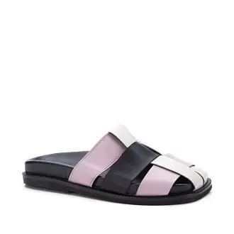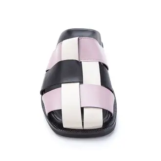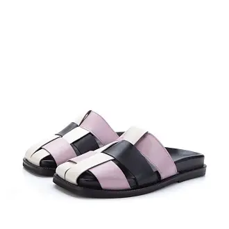 Стильные женские сабо изготовлены из натуральной кожи чёрного и розового оттенков.