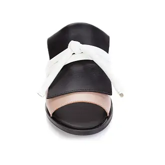 Широкий белый шнурок с узлом дополнительно украшает дизайн.