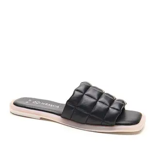 Сабо из натуральной кожи черного цвета прекрасно дополнят любой летний наряд. Модель на невысокой подошве с небольшим каблуком. Верх обуви украшен геометрической стежкой, которая создала объемные квадратные сегменты. Подкладка из натуральной кожи не вызывает эффект парения и обеспечивает коже ног особый комфорт.