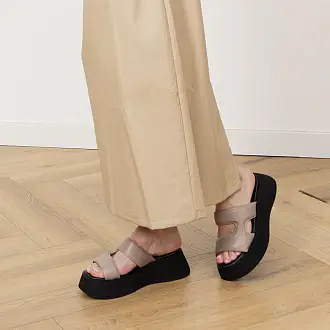Благодаря сочетанию бежевого верха и контрастной чёрной подошвы обувь обрела визуальную лёгкость.