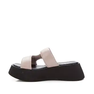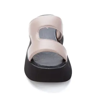 Модные женские сабо изготовлены из высококачественной натуральной кожи бежевого оттенка.