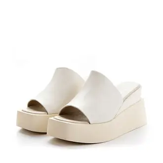 Лаконичные женские сабо изготовлены из натуральной кожи белого оттенка.