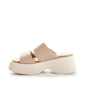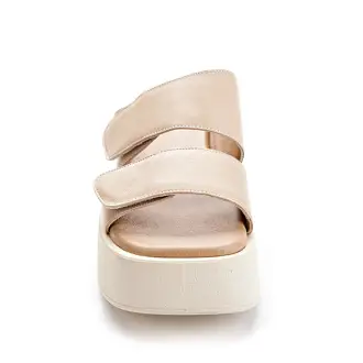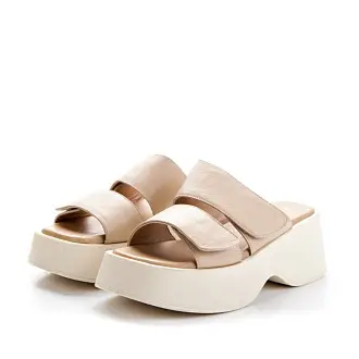 Женские сабо из натуральной кожи бежевого оттенка гармонично продолжат любой образ.