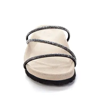 Женские сабо с тонкими текстильными ремешками надежно фиксируются на ногах и не соскальзывают благодаря изогнутой форме подошвы. Натуральная кожа, использованная в подкладке, делает обувь гигиеничной, пропускает воздух и отводит влагу от стоп.