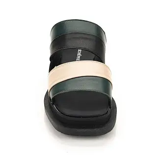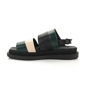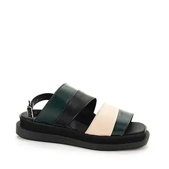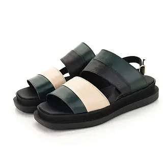 Стильные босоножки из натуральной кожи изготовлены мастерами итальянской фабрики Le Bohemien. Модель на невысокой платформе с открытой пяткой и мысом. Сочетание разных цветов кожи позволило создать красивый геометрический рисунок на поверхности.