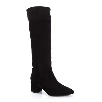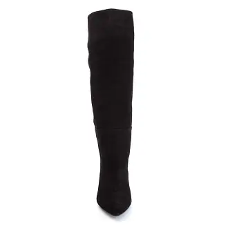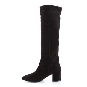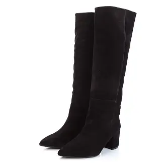 Элегантные женские сапоги изготовлены из бархатистой замши чёрного цвета.