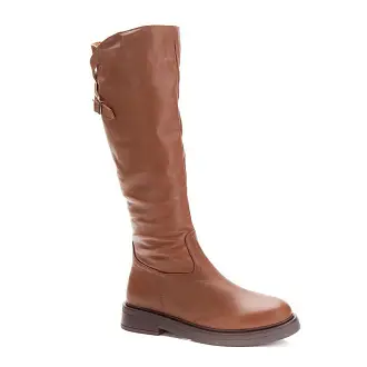 Элегантные женские сапоги изготовлены из натуральной кожи красивого коричневого оттенка. Модель имеет сдержанный лаконичный дизайн, что позволяет включить такую обувь в состав любых зимних образов.