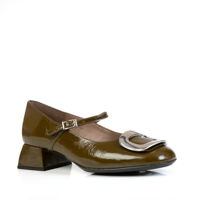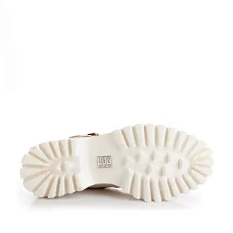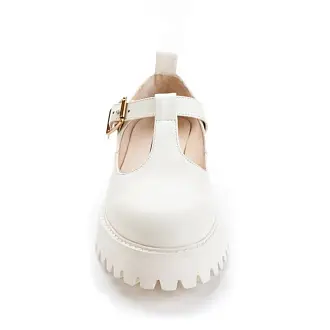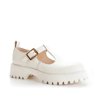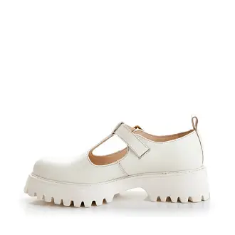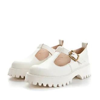 Очаровательные туфли Мэри-Джейн изготовлены из натуральной кожи бежевого оттенка. Модель фиксируется на ноге при помощи ремешков.