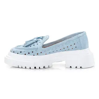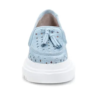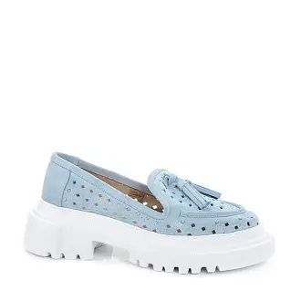 Модные туфли выполнены в современном дизайне, основу которого составляет крупная перфорация по всей поверхности и декоративная кисточка. Массивность модели - иллюзорна. На самом деле туфли получились очень легкими благодаря полым нишам в полимерной подошве. Натуральная кожа снаружи и внутри позволяет коже ног дышать, не создает эффекта парения, а это особенно важно в теплое время года.