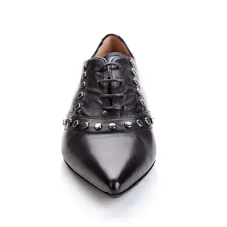 Туфли в официально-деловом стиле — это находка для гардероба девушки, которая первую половину дня проводит в офисном пространстве, где царят дресс-код и дедлайн, а к вечеру летит на свидание в модный ресторан, клуб или прогулку по парку. Черные туфли из натуральной кожи не станут препятствием при выборе наряда: и платье в пол, и мини-юбка, и брюки любого длины возможно сочетать с этой моделью. В них будет уместно появиться в любом пространстве и комфортно провести весь день. Невысокий каблук сделает походку изящнее, шнуровка поможет посадить обувь точно по ноге, а заостренный мыс добавит образу актуальности.